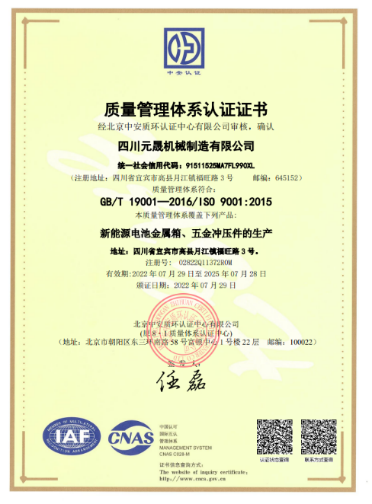 四川元晟机械制造有限公司成立于2022年2月,坐落于四川宜宾高县经济开发区福溪产业园,是新能源领域一家快速成长的新兴企业。作为福建元晟汽车配件科技有限公司的全资子公司,公司注册资本5000万元,占地75亩,专注于新能源电池箱体、箱盖等结构件的研发与生产。