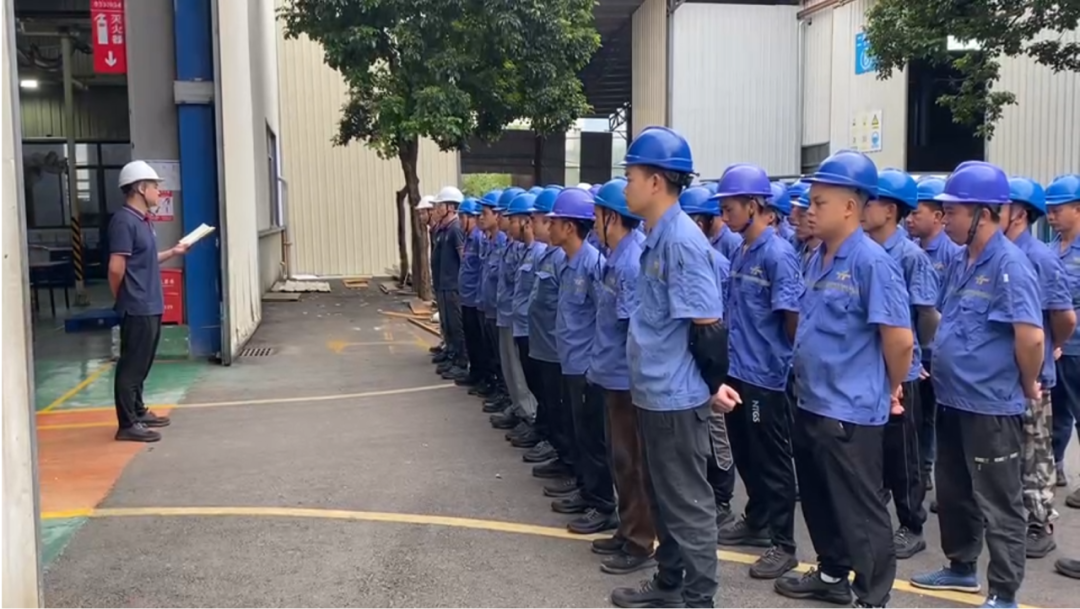经过精益管理吴老师的《高效早班会》培训过后,9月8日,焊接当班组长在焊接车间门口主持了高效早班会。